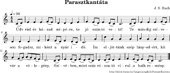 e folytatva a Bach-művek elemzését: ebből a szempontból művei előadásakor tulajdonképpen az sem lényeges, hogy milyen nyelven énekelnek az előadók. Fenti kottánkon pl. magyarra fordítva látunk egy részletet az egyik világi kantátából. Ráadásul egyes kantátáinak - a korabeli német költészet jóvoltából - sokszor olyan érzelgős, modoros, s nem egyszer nevetséges szövegük van, mely a mai hallgató számára már-már kibírhatatlan, nem úgy, mint a végtelenül gazdagon meghangszerelt, megkomponált zenéjük. ("Jöjj, édes halál órája, mikor lelkem mézet eszik az oroszlán szájából" - éneklik pl. a 161. kantátában.)